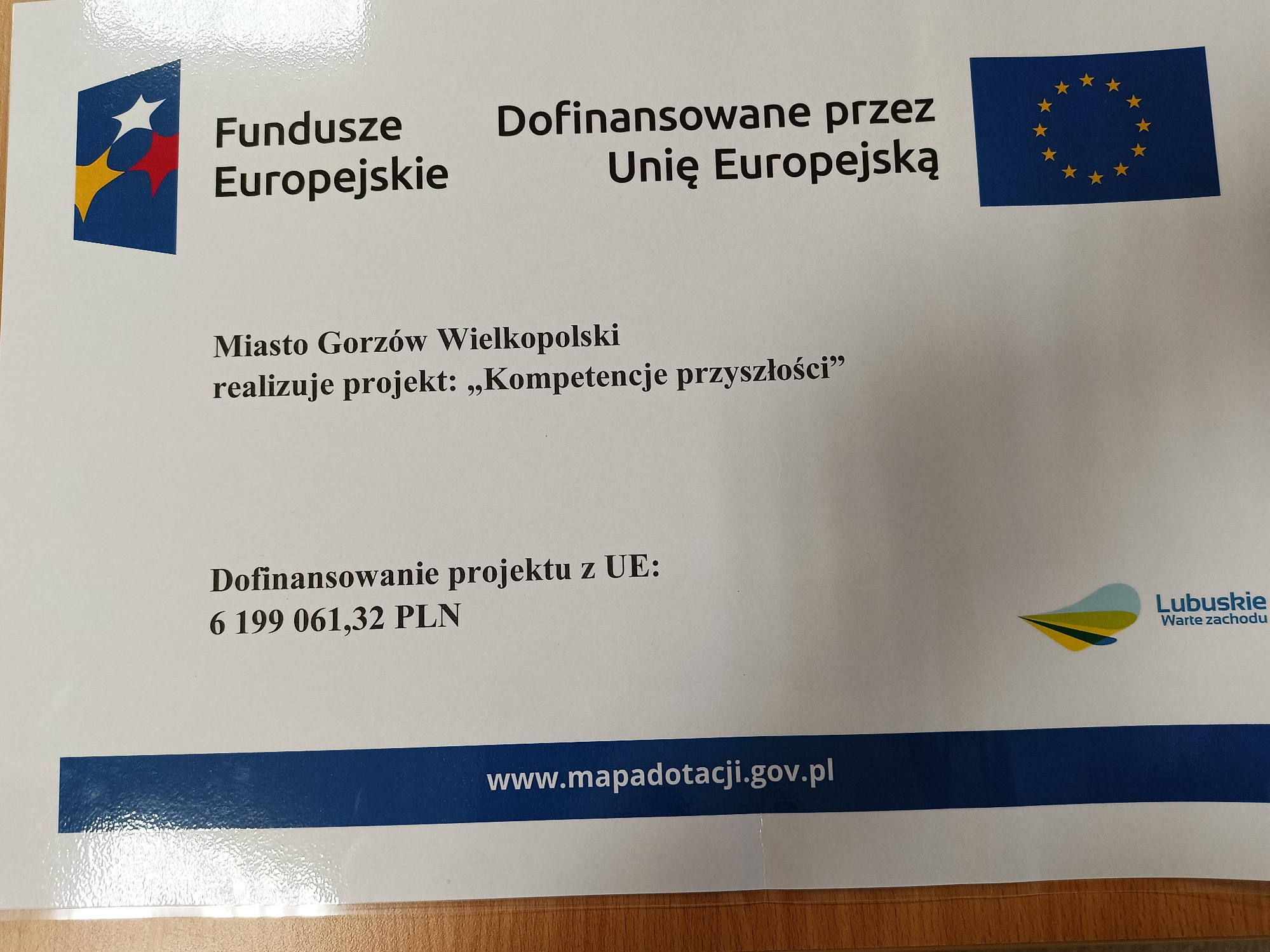 Miasto Gorzów Wielkopolski realizuje partnerski projekt w ramach wsparcia na rzecz szkolnictwa podstawowego i średniego „Kompetencje Przyszłości” współfinansowanego z Europejskiego Funduszu Społecznego Plus w ramach Programu Fundusze Europejskie dla Lubuskiego 2021 – 2027, w ramach Priorytetu 6. Fundusze Europejskie na wsparcie obywateli, Działania 6.7 Edukacja – ZIT.